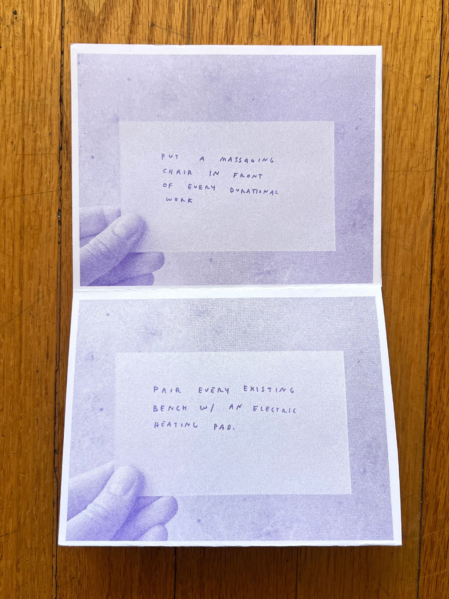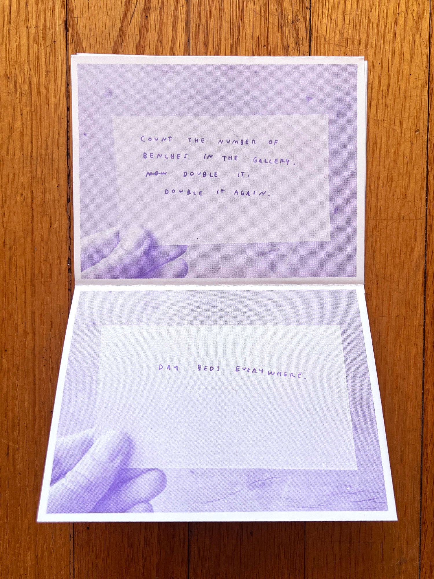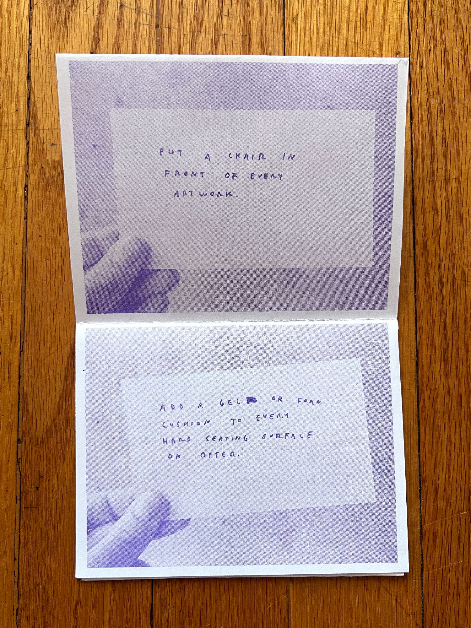 A collection of the artist's written instructions for exhibition seating.